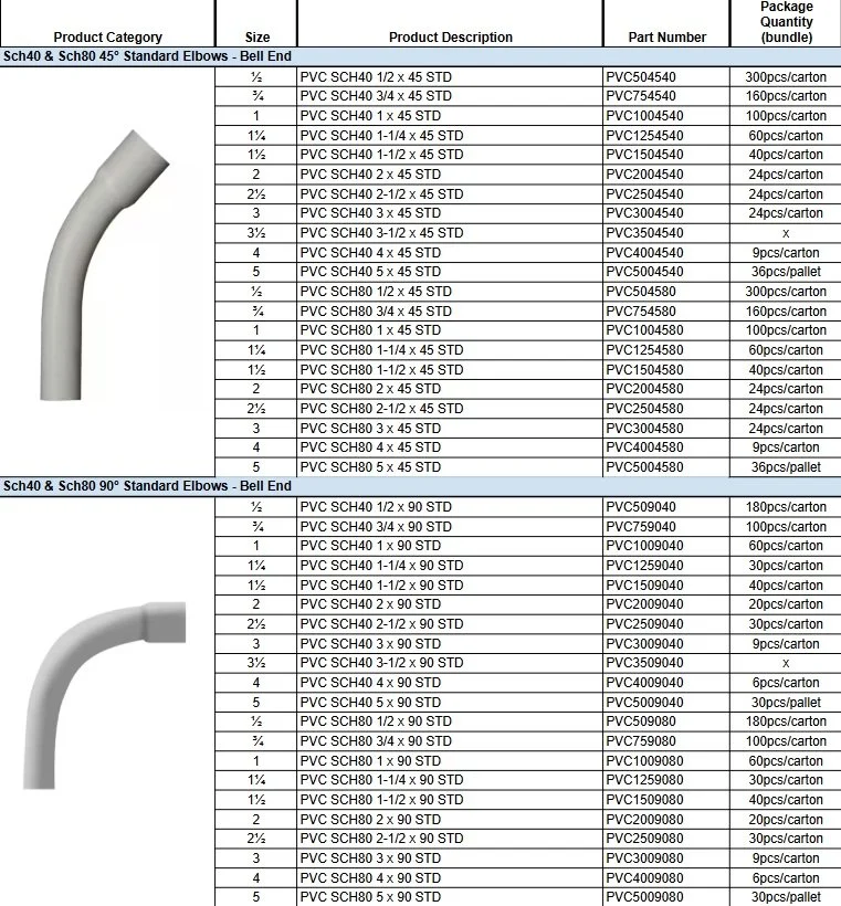 PVC STANDARD ELBOWS 45°/90° SCH40/80